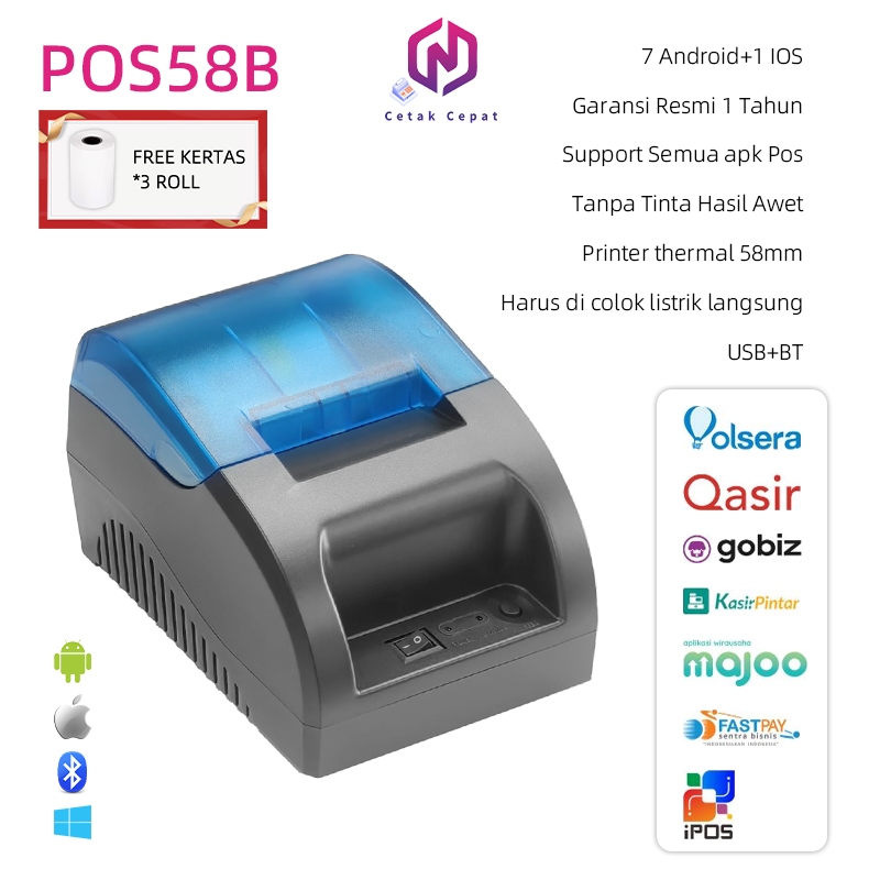 FREE 3*Roll PRINTER BLUETOOTH Kertas Portable Mini Printer Thermal 2 inch Wireless USB Receipt Bill Ticket Printer with