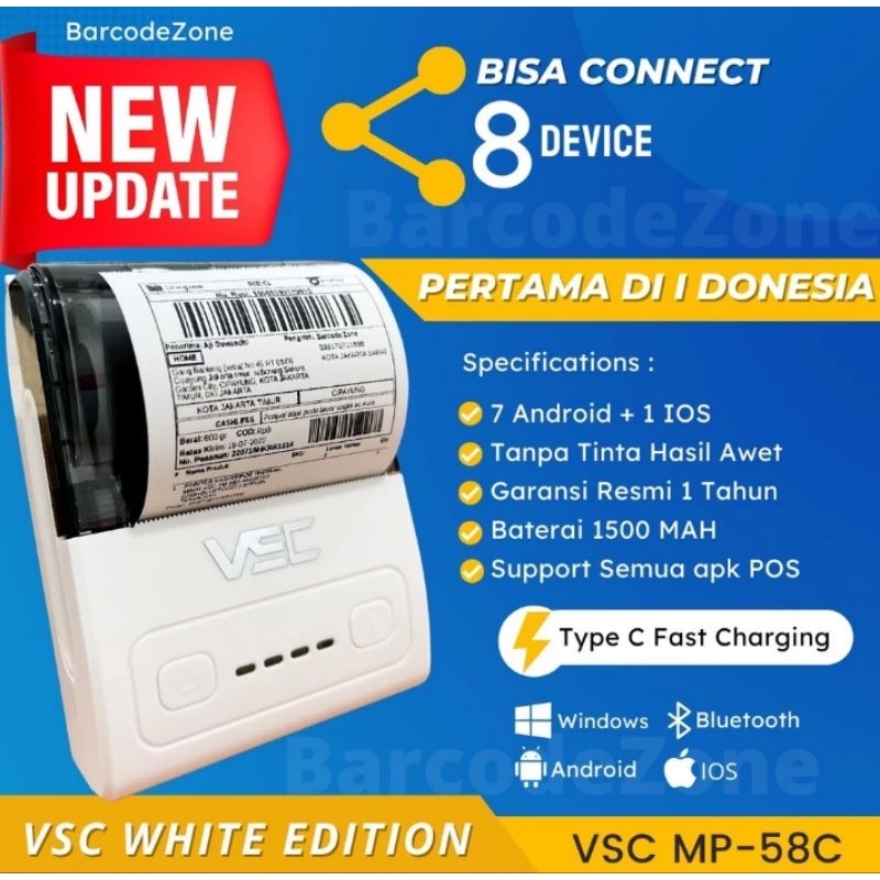 PRINTER BLUETOOTH THERMAL VSC MP-58C 58mm SUPPORT FAST