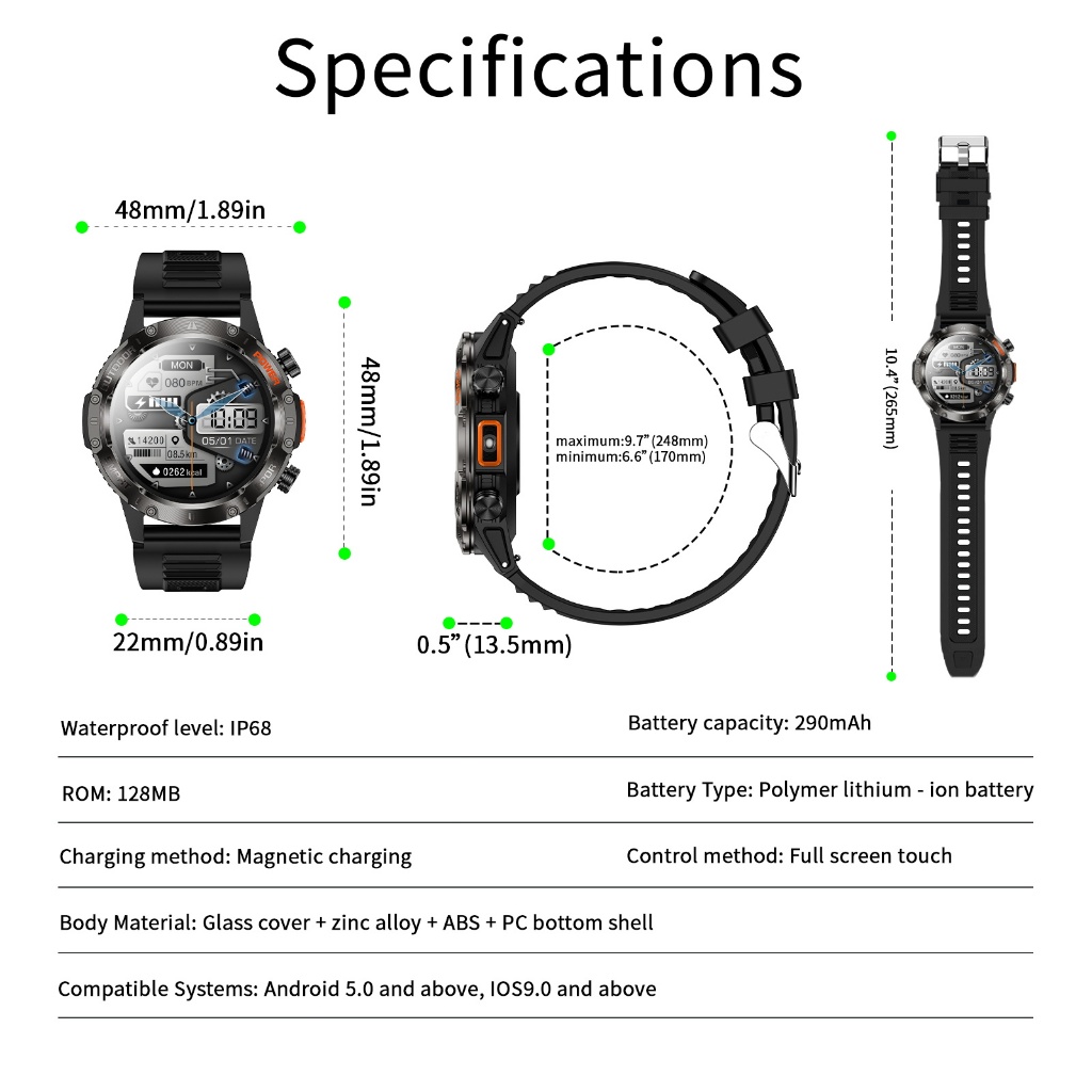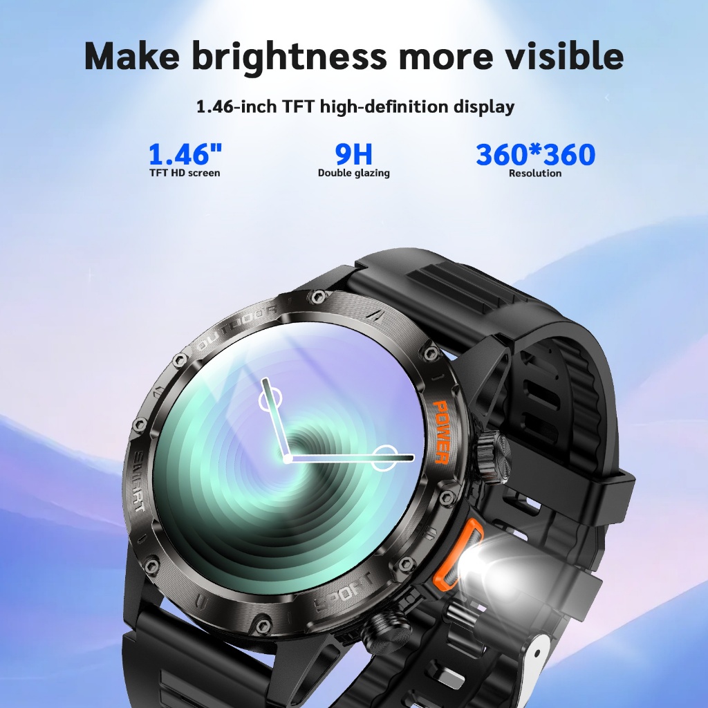 SKMEI smartwatch B76 ip68 Tahan Air Jam tangan Pintar 1.46 inci touch screen LED FLASHLIGHT metal case outdoor Jam tanga