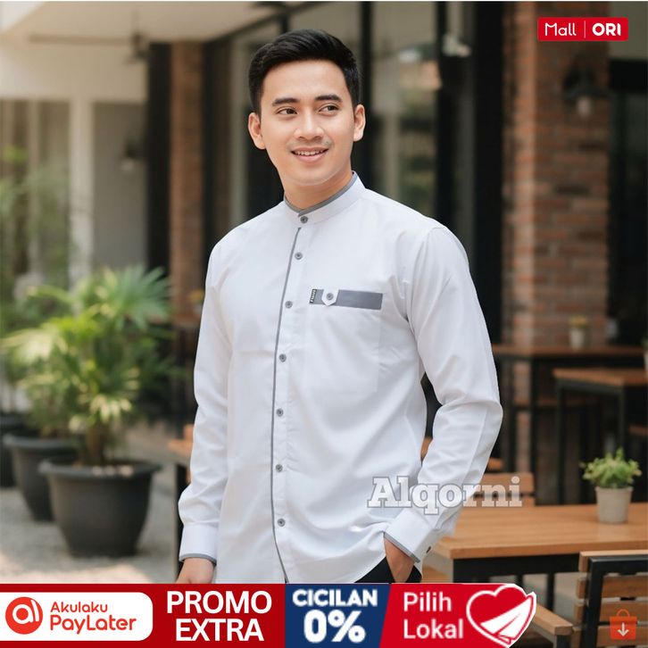 BAJU KOKO PRIA DEWASA ATASAN MUSLIM PRIA DEWASA LENGAN PANJANG POLOS PUTIH - KEMKO LIST SERIES
