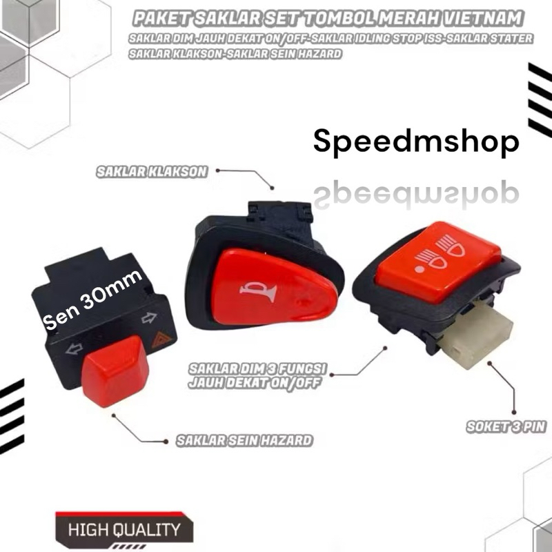 PAKET SAKLAR TOMBOL MERAH VETNAM SAKLAR MERAH STARTER KLAKSON DIM SEN VARIO125/150 SCOOPYFI BEATESP