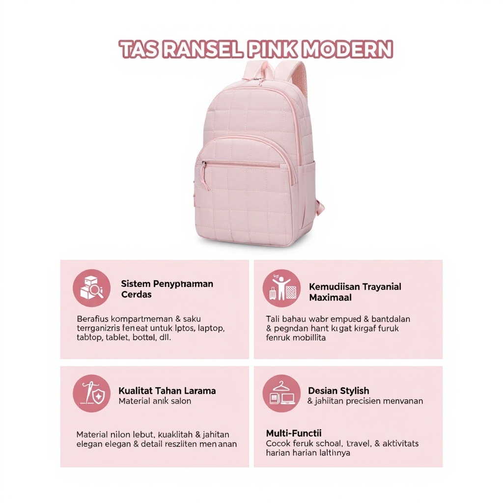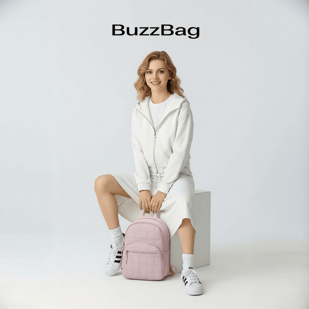 BuzzBag - Laptop Backpack for Women Travel Backpack Kuliah Travel Ransel Quilted Water Tas Perjalanan Minimalis, Tas Ransel Mahasiswa