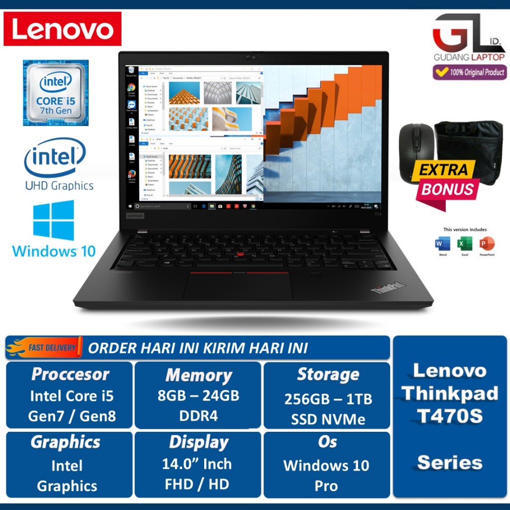 Laptop Murah Lenovo Thinkpad T Series Intel Core i5 RAM 24GB 1TB SSD 14.0 Inch Win10Pro Terlaris