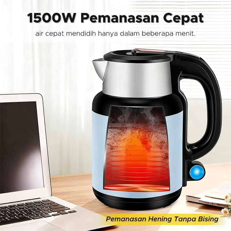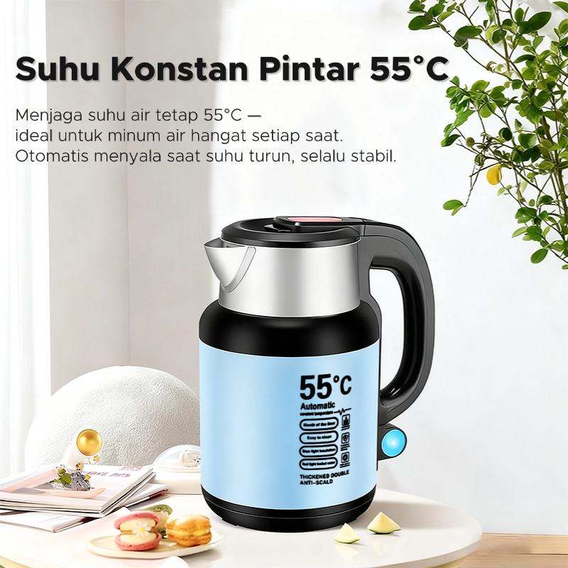 Ruvia Teko Listrik 1500W 2.3L Pemanas Air – Smart 55°C Air Otomatis & Jaga Suhu Stainless Steel