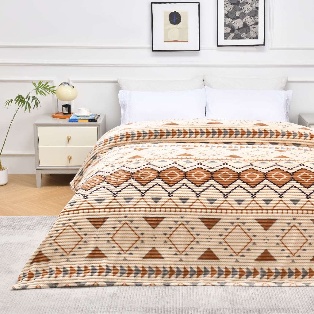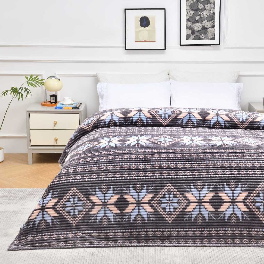 Unique Bohemian Selimut bulu halus Salur Printing 180 x 200 cm