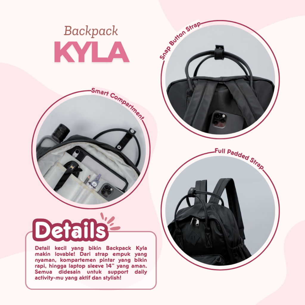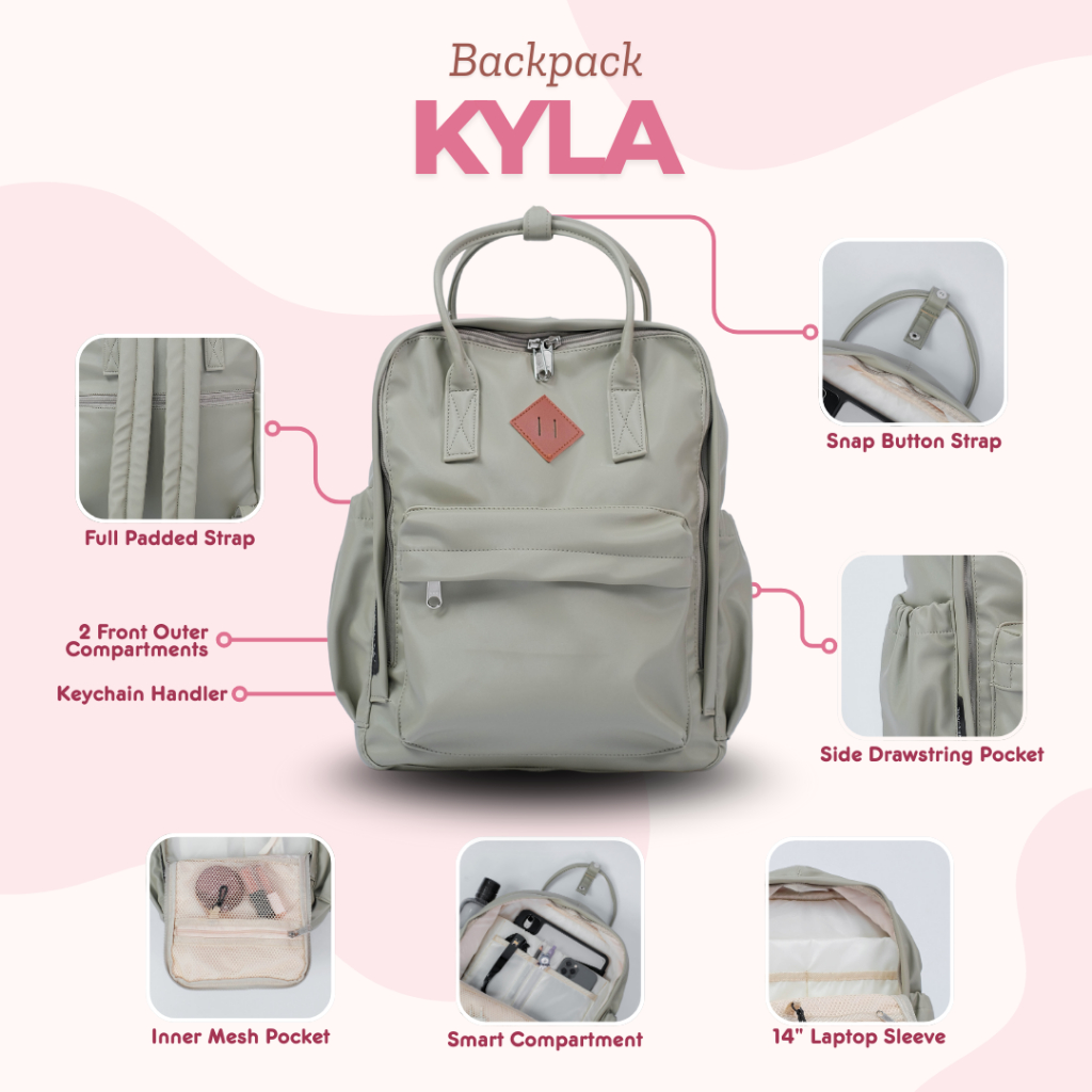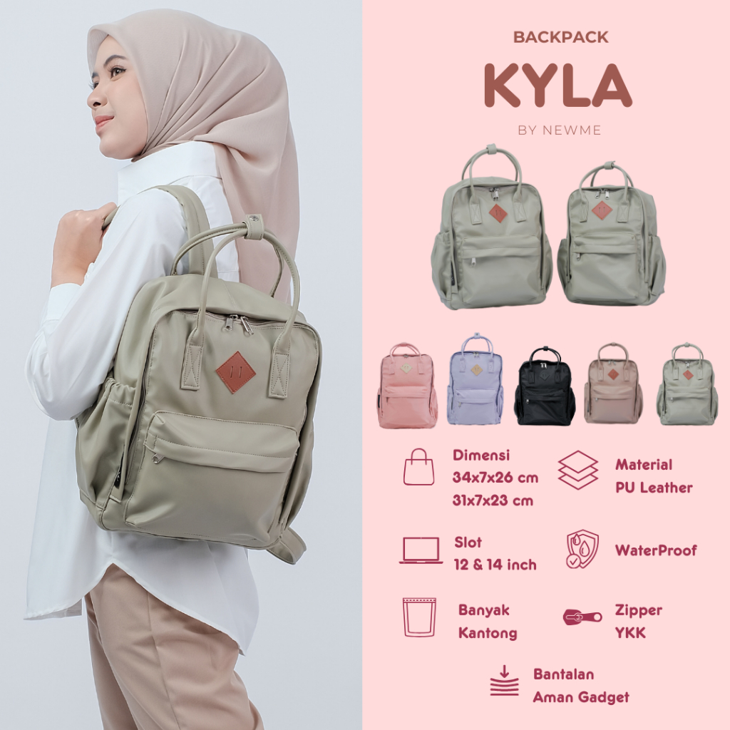 Backpack Kyla – Tas Ransel Laptop Tablet 12/14 Inch, Waterproof, YKK, Tas Wanita, Tas Sekolah Cewek