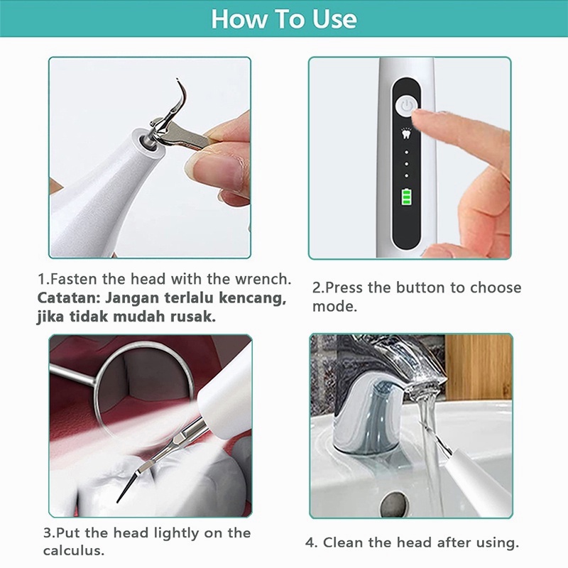 Alat Pembersih Karang Gigi Dental Scaling Sonic Elektrik 1 Set 3 es Perawatan Dan Pembersih Karang Gigi Dental Remover