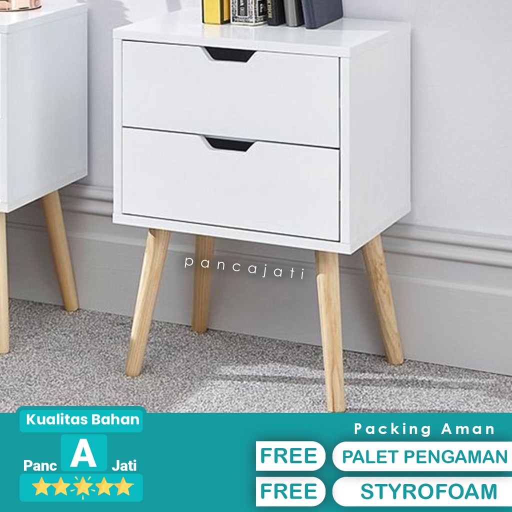 Meja Nakas Minimalis Bedside Table 2 Laci Putih