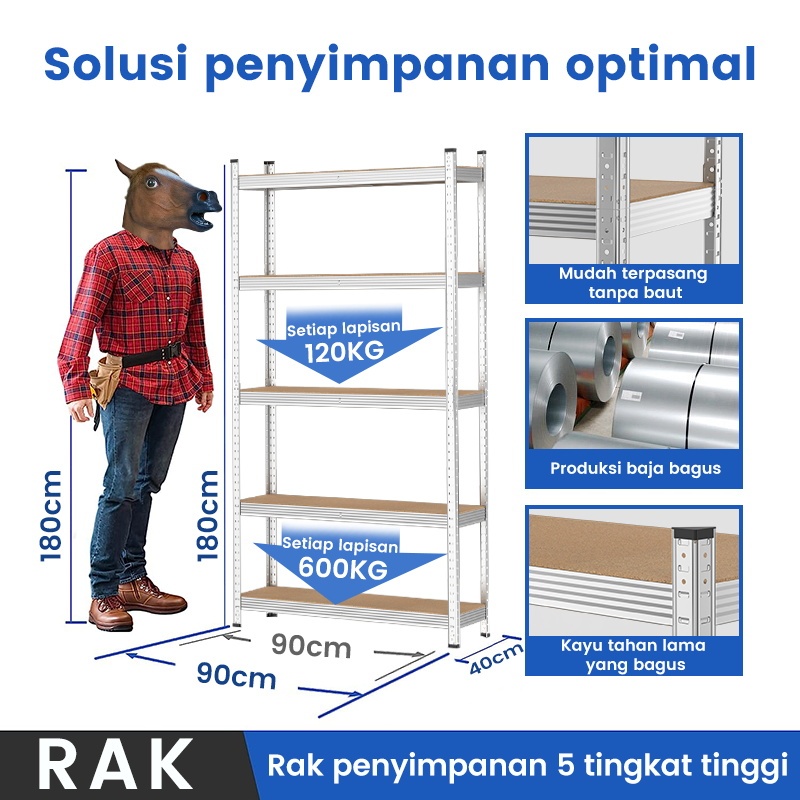 Sakura Rak serbaguna Rak besi Rak besi susun Rak penyimpanan Rak besi siku Rak adjustable