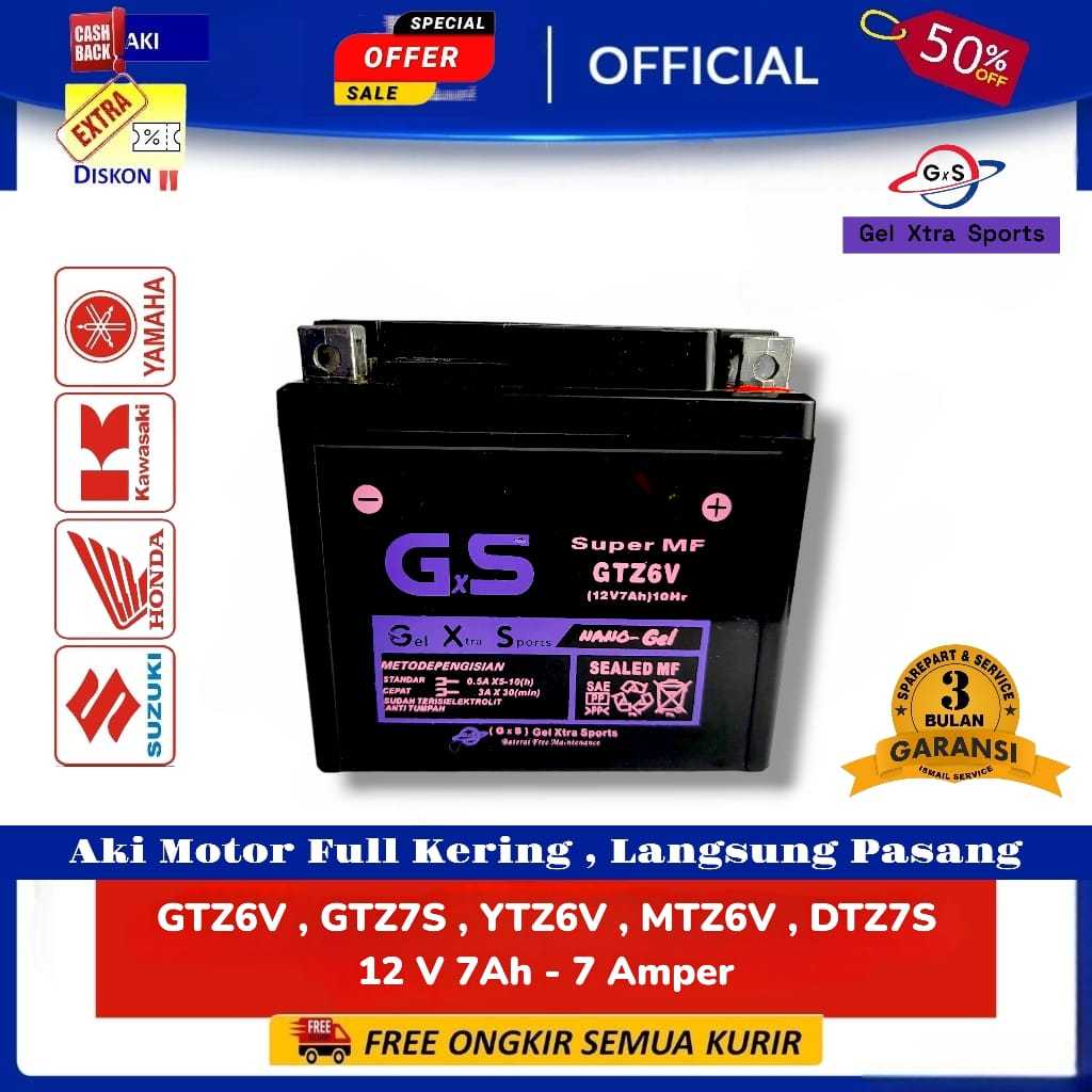 AKI MOTOR KERING MF GT6V / GTZ7S 12V 7AH MOTOR VARIO 125 150 160 SONIC R SUPRA GTR CBR CB PCX BEAT FI MIO SPORTY SCOOPY
