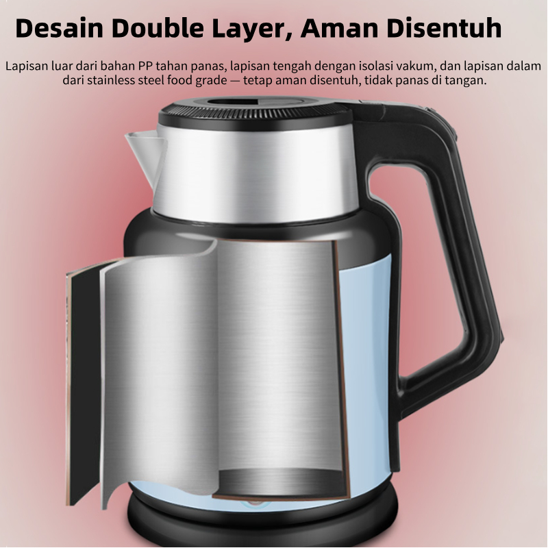 Teko Listrik Otomatis 1500W 3L Cepat Panas Anti Panas Hemat Listrik Keep Warm