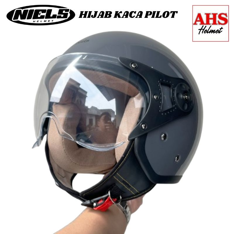 NIELS HELM HIJAB KACA PILOT PREMIUM BAHAN ABS STANDART SNI
