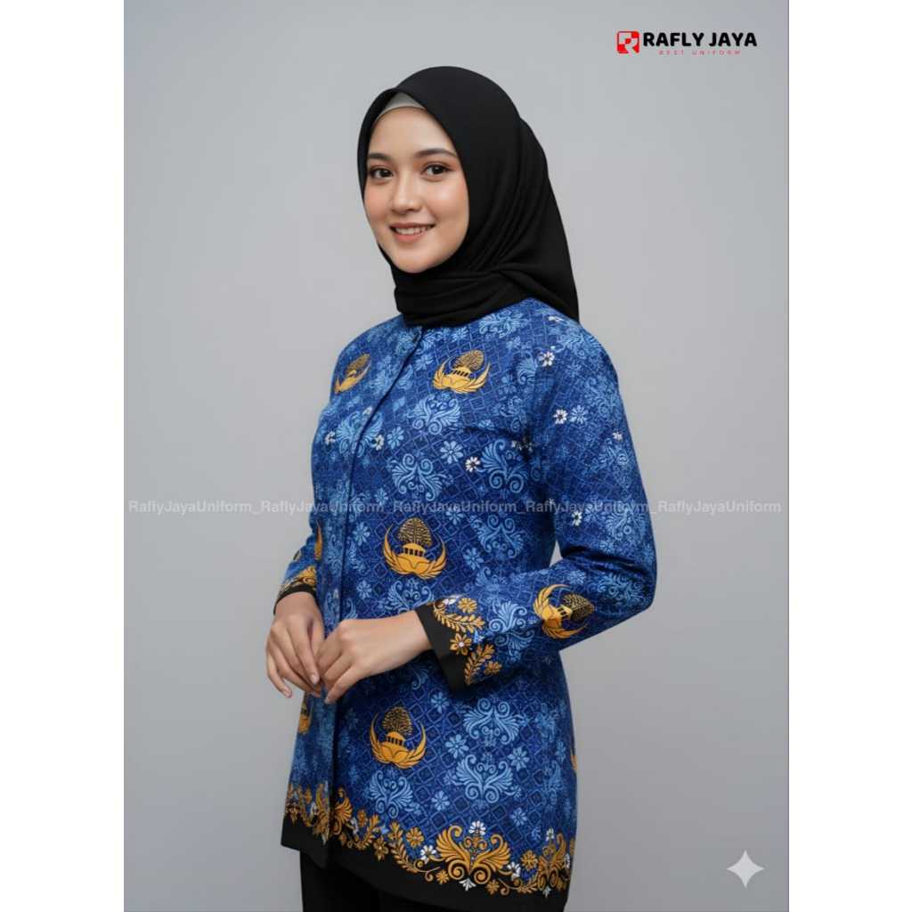Baju Batik Korpri Terbaru Wanita Kerah Hitam Lapis Furing - Seragam PNS -Seragam Korpri - Rafly Jaya