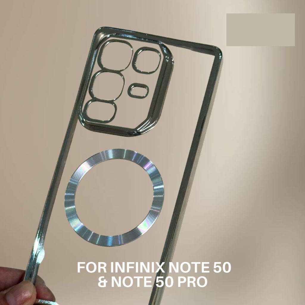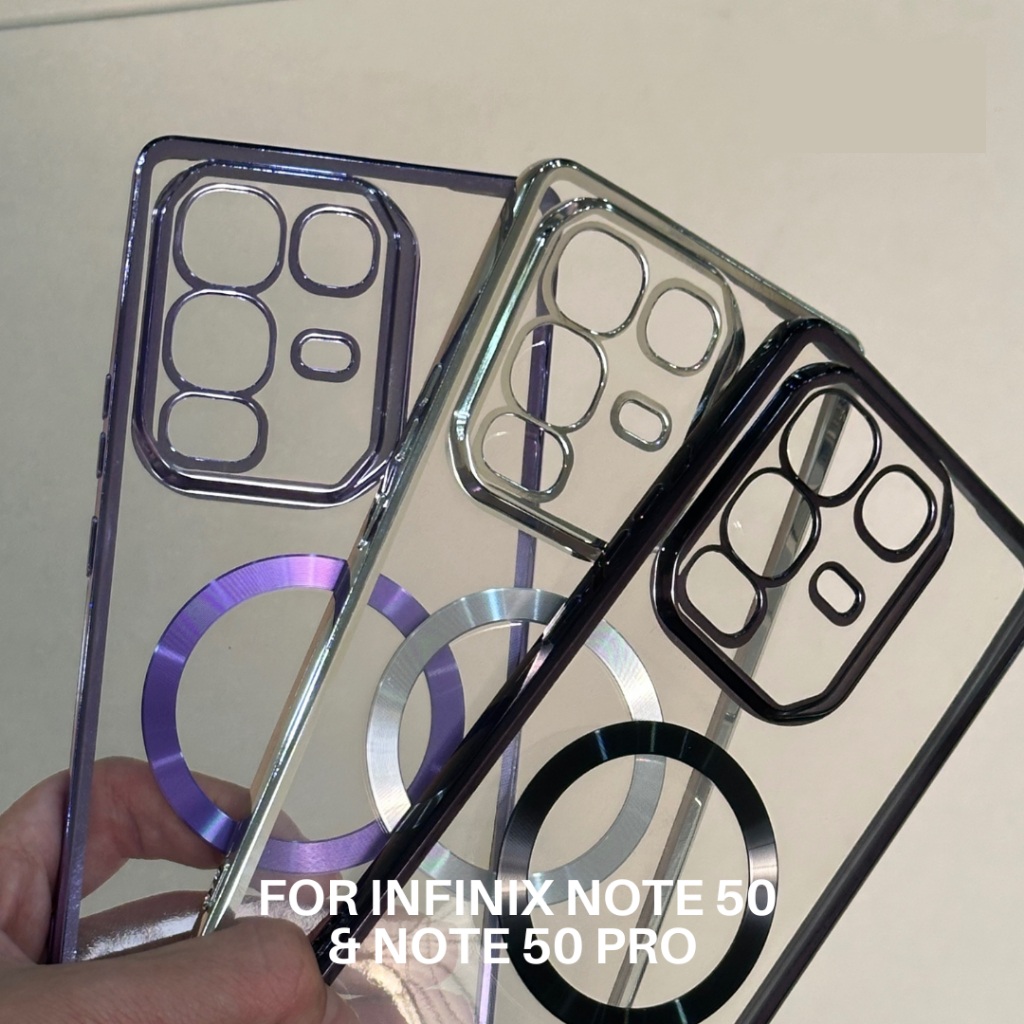 Case INFINIX NOTE 50 / NOTE 50 PRO 4G Clear Luxury Plating Magsafe Square List Chrome Casing Silikon Hp