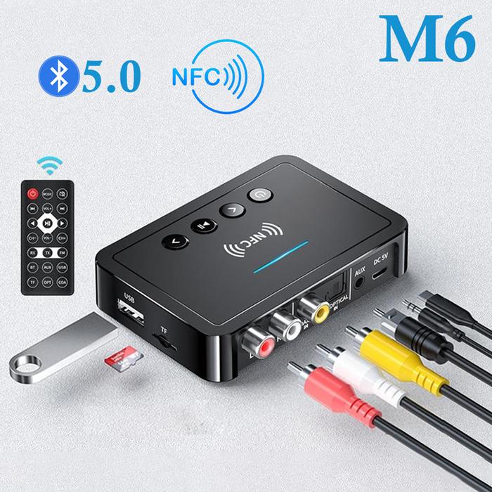 Adaptor Bluetooth Receiver & Transmitter 5.0 NFC Audio Wireless Rechargeable Port Aux RCA with Remote M6