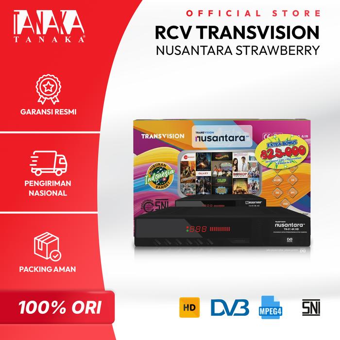 TANAKA RCV Transivision Nusantara HD STRAWBERRY Receiver Set Top Box Type T2 STB Siaran TV Digital Garansi Resmi 1 Tahun