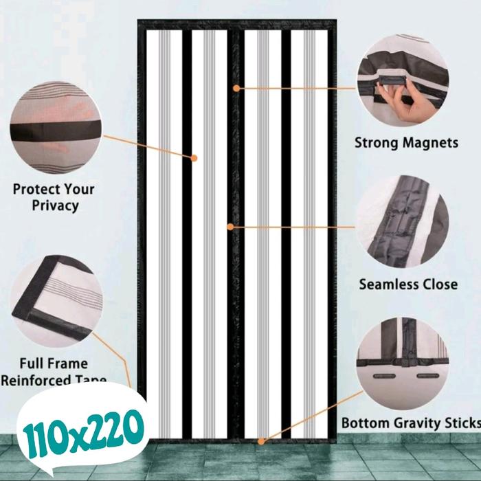 JUMBO Tirai Pintu Magnet AC/Dapur/Toilet Kedap Udara Kusen Alumunium Minimalis Ukuran 110x220cm - DEDAUNAN 110x220cm