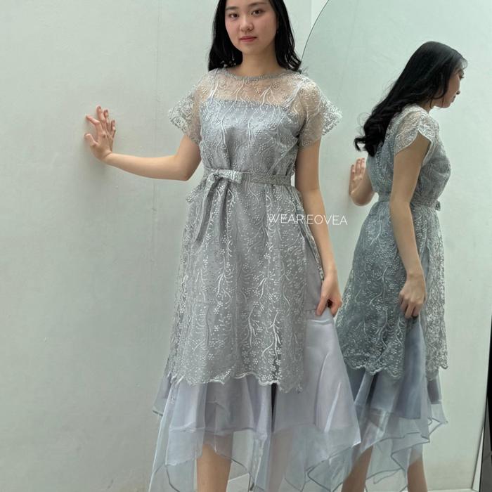 Irish Dress Wanita Kondangan Premium Pesta Bridesmaid Brukat Formal Pink midi - Silver