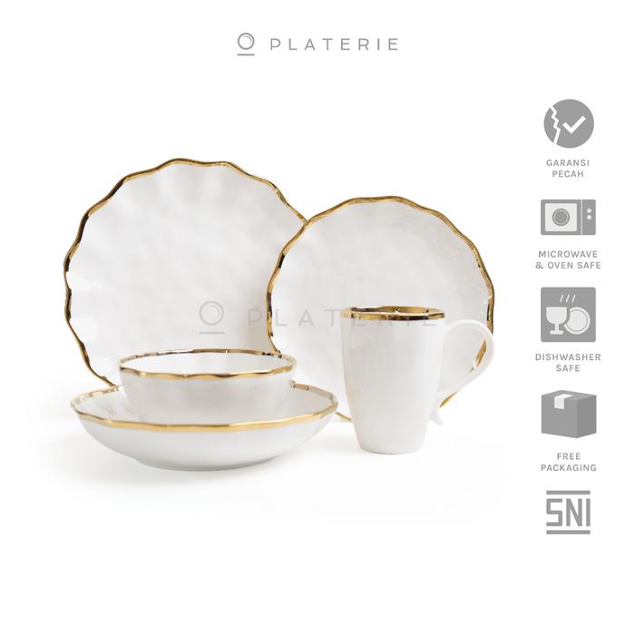 PLATERIE Dinner Set 5Pcs Piring Mangkok Plate & Bowl Keramik Shell Gold - PLATE 11INCH