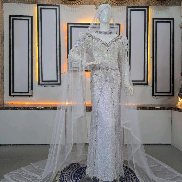 Dress 2 in 1 Pengantin // Dress Belah Full Payet - emeral all size