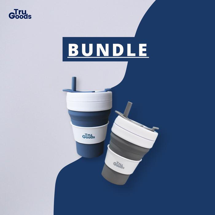 Foldable Cup Premium 2 pcs Bundle / Gelas Kopi lipat Tru Goods Bundle - Classic Blue & Classic Grey