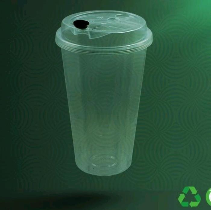 Gelas Plastik PP Clear Tebal Import + Tutup + Accesories 500 ML @25pcs - Ttp Hitam Acc Hitam
