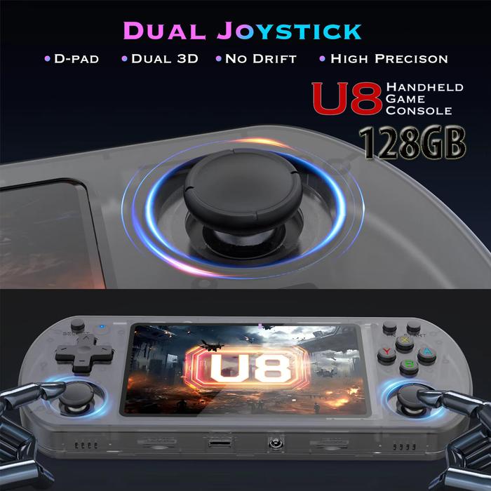 U8 Retro Handheld Video Game Console Open Source Linux System 4.0 Inch IPS Screen Portable 128GB - Black
