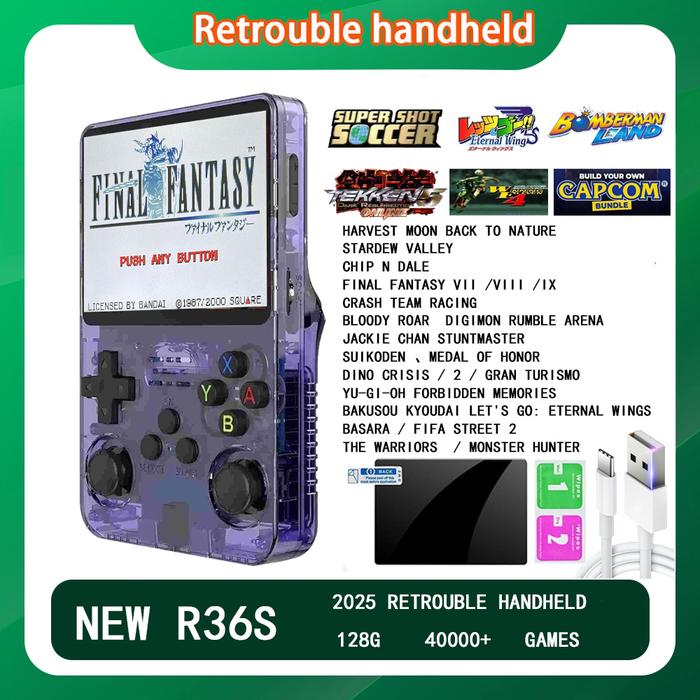 Retrouble handheld R36S 128GB 40000+ Classic Games multi console | Game Retro konsol genggam - Hitam Transparan