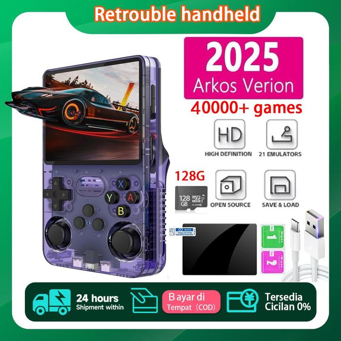 NEW R36S Retro handheld multi console | Game Retro 128GB 40000+ Classic Games konsol genggam - Hitam Transparan