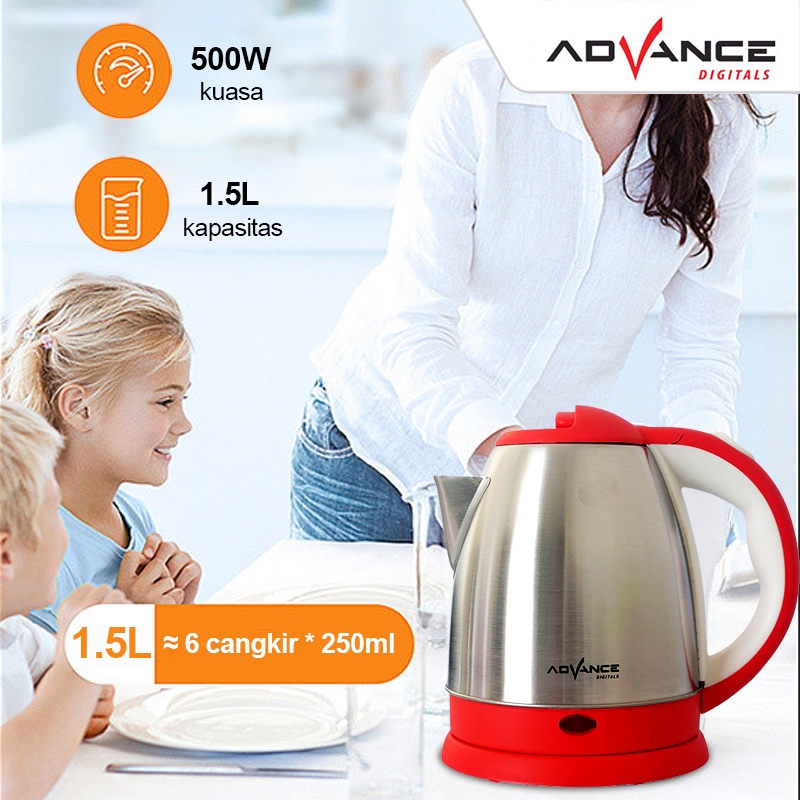 Advance Teko Listrik AK-151 Pemanas Air Low Watt 1.5 Liter Stainless 1