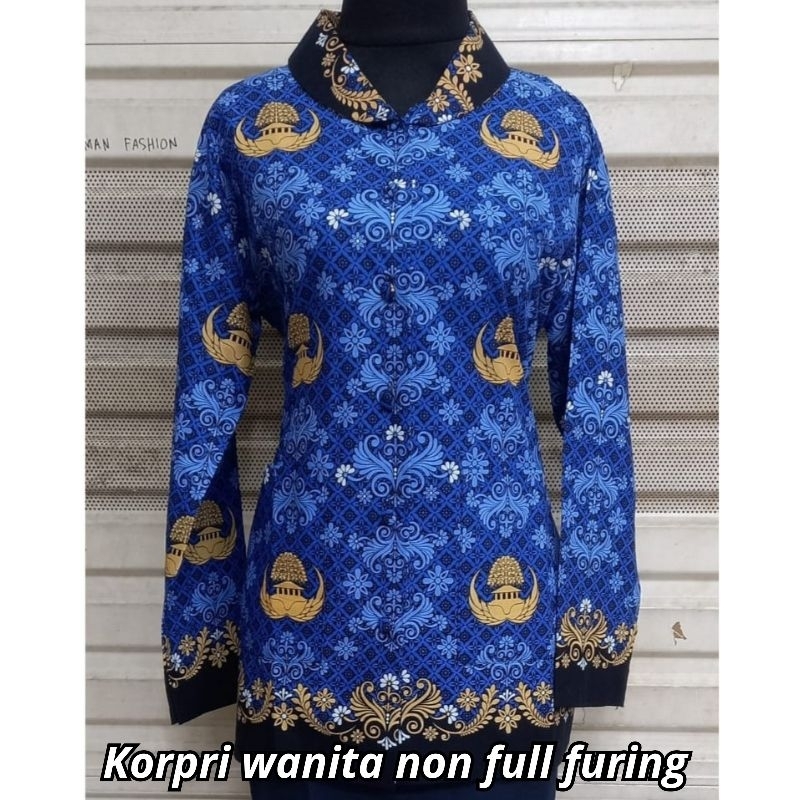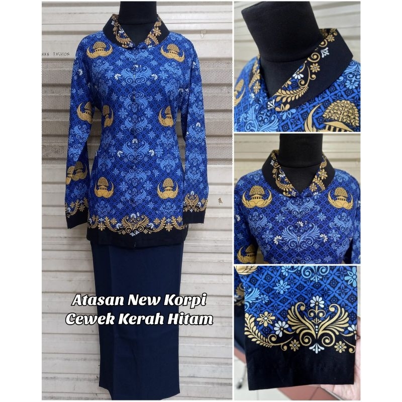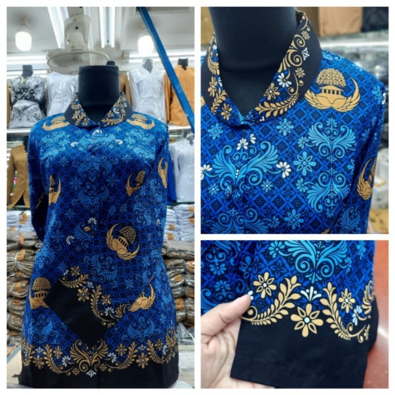 atasan seragam batik korpri wanita Full FURING kerah hitam guru dan pns bahan katun