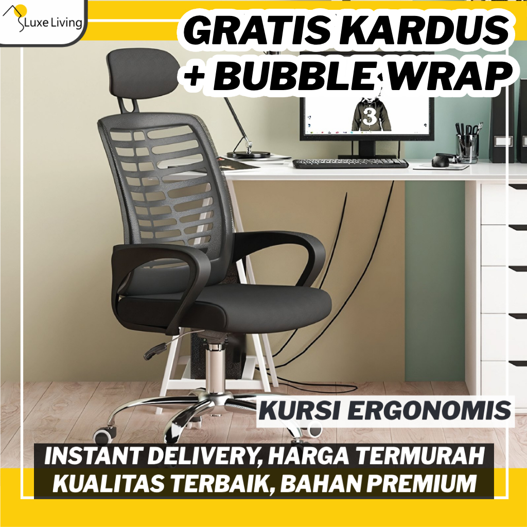 LLI Kursi Kantor Kursi Kerja Kursi Belajar Ergonomis Putar Hidrolik Kursi Boss Staff Jaring Murah