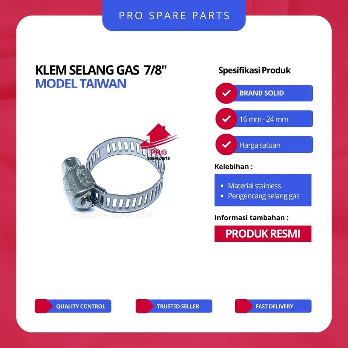 Terpercaya 5 BUAH KLEM TAIWAN - Klem Selang Gas - Hose Clamp 7/8" - Klem Ring / Cincin Selang Regulator Kompor Gas Hemat
