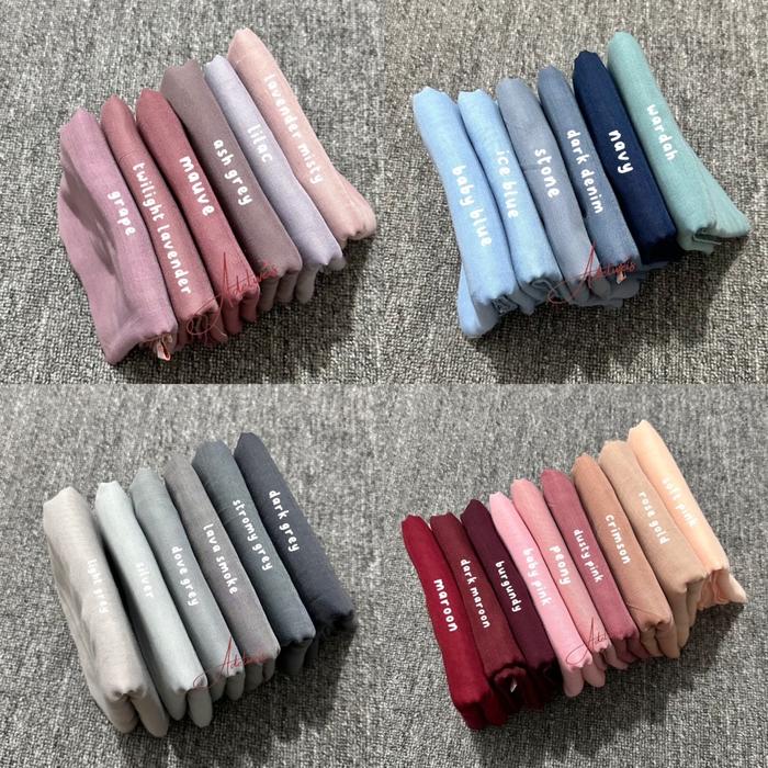 Army, Broken white, Capucino, Caramel, Coksu, Crimson, Dark Maroon, Dark choco, Deep army, Denim, Desert Sage, Espresso, Grape, Grey, Hijau botol, Hitam, Ice blue, Ice coffe, Iron, Lavender misty, Lilac, Major brown, Maroon, Matte Green, Milo, Mocacino, Mocca muda, Navy, Oak, Rose Gold, Sage, Scarlet Brown, Silver, Smoke, Stone, Stormy Grey, Taupe, Twillight lavender, White, Wood, abu arang, alter, ash grey, avocado, baby blue, baby pink, basil, beige, biru bca, biskuit, blue jeans, brown sugar, burgundy, charcoal, cheesnut, chocomalt, coffee, coklat pramuka, coksu muda, coksu tua, cream, dark navy, dove grey, dusty pink, frapucino, ivory, khaki, latte, lava smoke, lemon, light grey, mauve, merah, minor random, misty grey, mustard, nude, oat, olive, pearl grey, peony, pistachio, rosemilk, sand, smoke grey, soft pink, soft purple, soft yellow, turkish, wardah