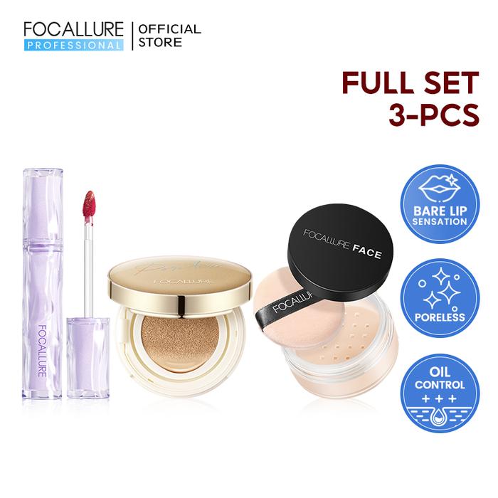 [Official] FOCALLURE 3pcs Makeup Sets Foundation & Loose Powder & Lip tint - Set 1