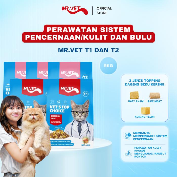 Paket Spesial Kombo Mix T1 2kg & T2 3kg paket makanan kucing kering Mr.Vet dengan protein 30% yang