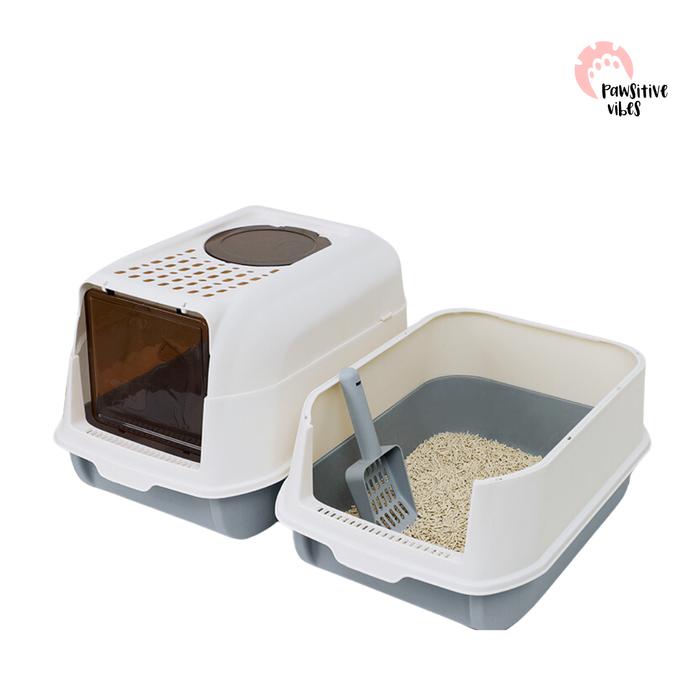 Litter Box Tertutup Dengan 2 Sisi Pintu - Bak Pasir Kucing Free Sekop - Cat Toilet Full Tertutup -