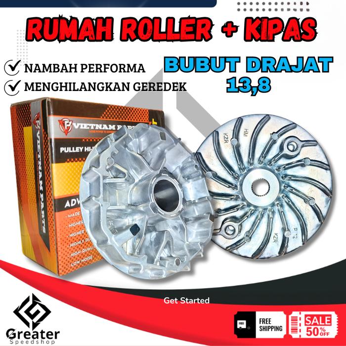 PAKET UPGRADE RUMAH ROLLER VARIO 125 150 RUMAH ROLLER KZR BEAT RUMAH ROLLER BUBUT 13,8 RUMAH KIPAS PULLEY RUMAH ROLLER KITACO - RUMAH+KIPAS KOJ, ROLLER 8 GRAM