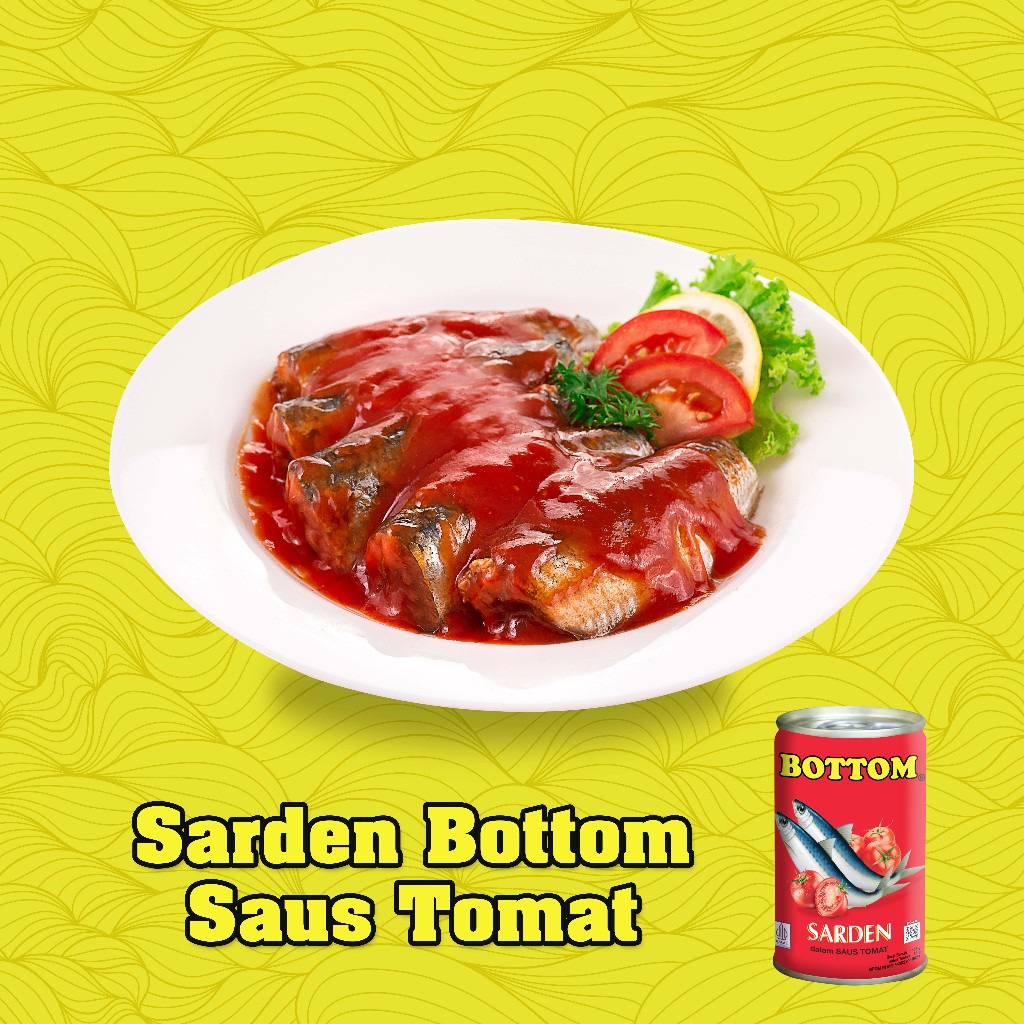 Paket 2 pcs Bottom Sarden mini saus tomat Makanan Ikan Kaleng 155 g