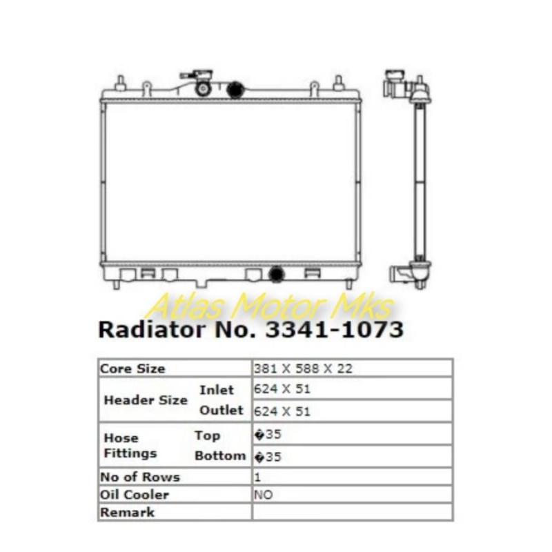 1SET RADIATOR A55Y MANUAL M/T NISSAN LIVINA / GRAND LIVINA / LIVINA XGEAR / LIVINA X-GEAR "2007-2019" / JUKE - ADR 3341-1073C MANUAL M/T