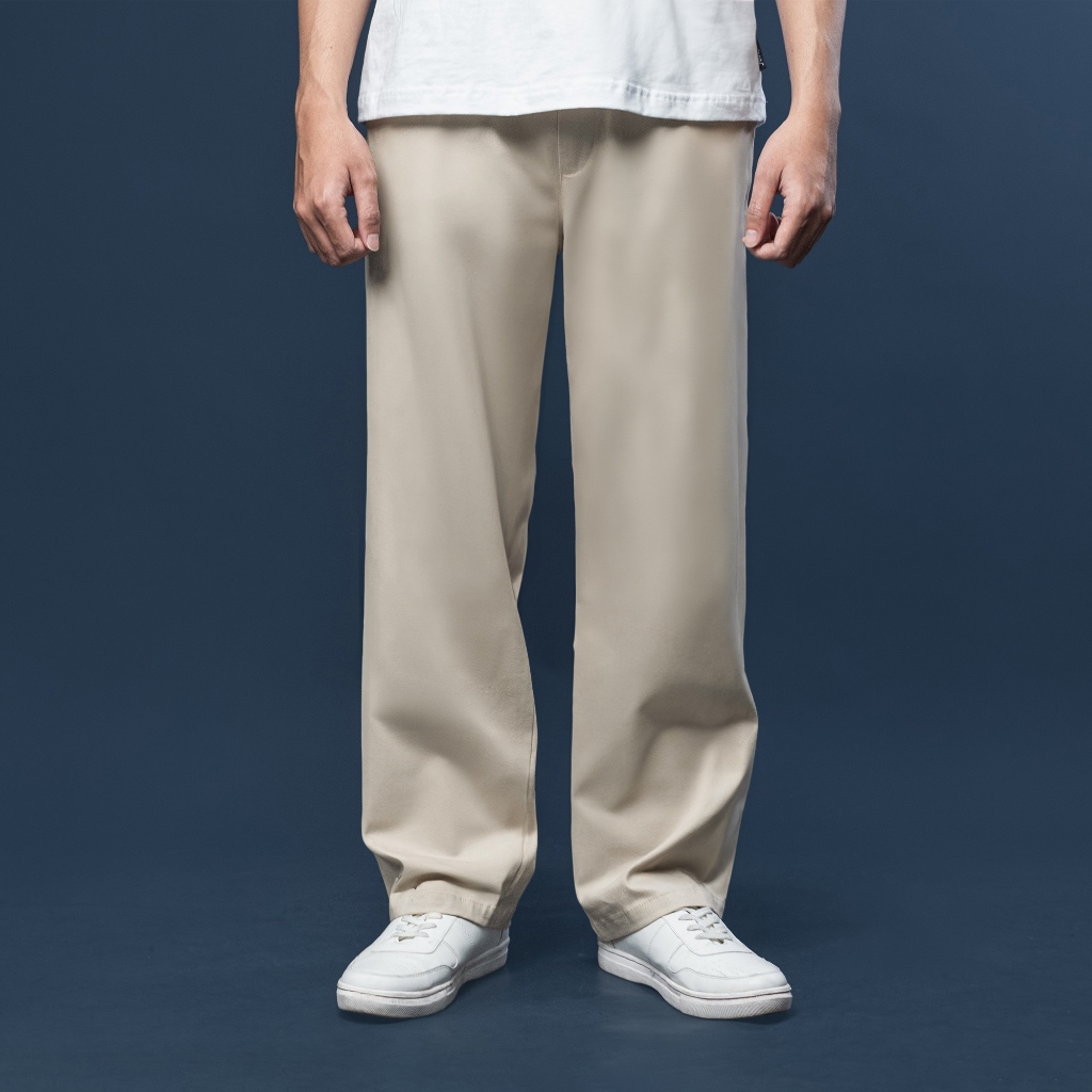 Fatto A Mano Celana Chinos Loose Fit Long Pants Baggy Panjang Krem Muda Light Cream