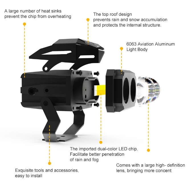 Lampu Tembak Sorot LED Laser Gun Vinyx MT27 Lasergun D3 Mobil Motor Dual CSP MT 27 Warna Putih Kuning Flash Strobo