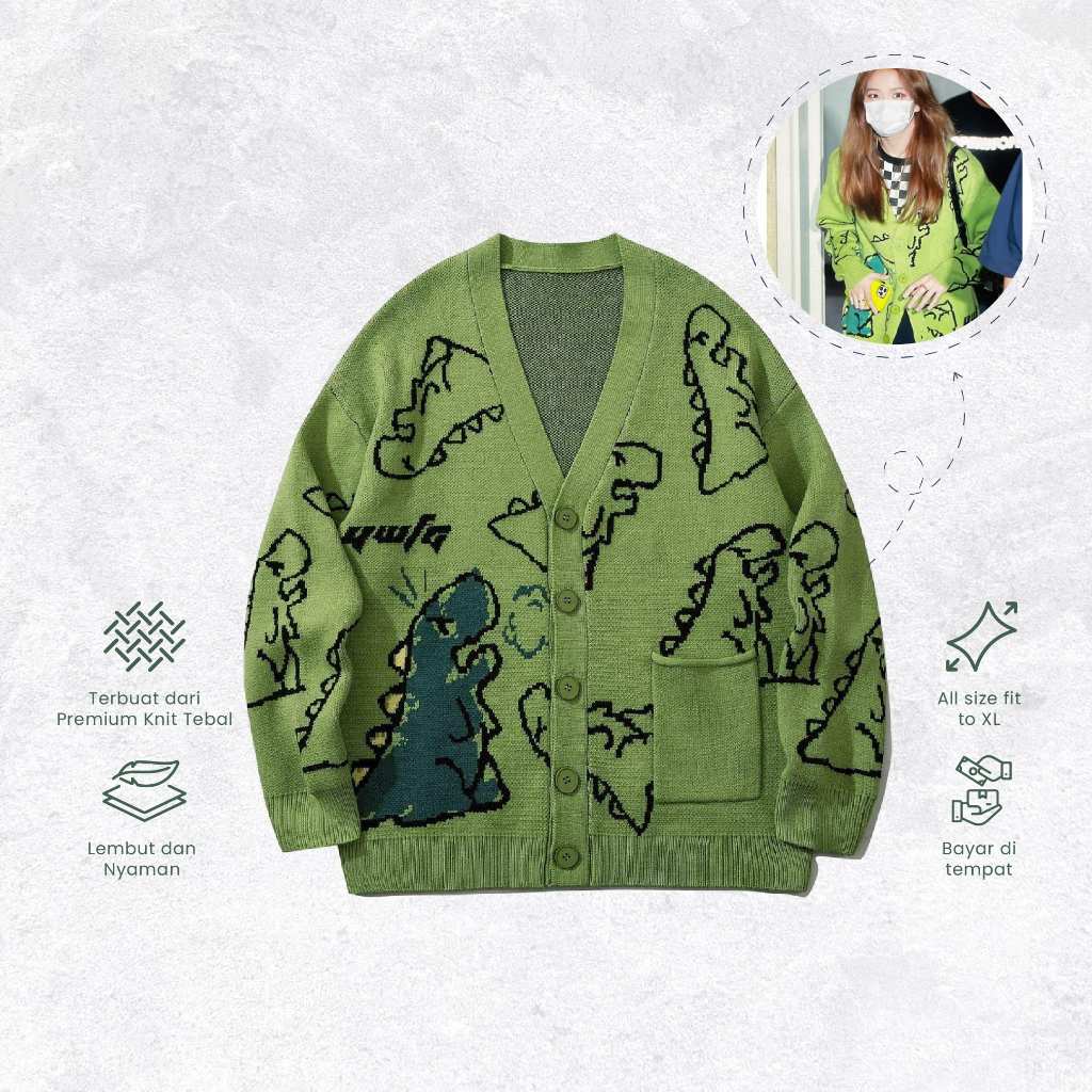 Dino Cardigan Krean Style Jisoo Bp Knitwear Unisex Rajut Premium -Najahstore_