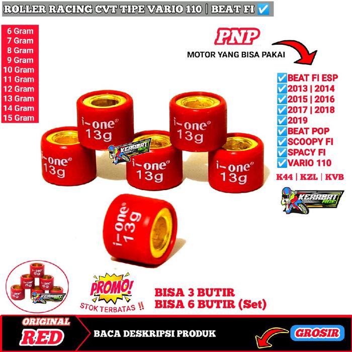 ROLLER ROLER LOLER ( BF ) BEAT FI BEAT ESP BEAT STREET BEAT POP VARIO 110 KARBU SCOOPY ESP 6 9 10 11 8 7 12 13 14 15 16 GRAM GR SET MOTORCYCLE RACING - 3 BUTIR, 6 GRAM
