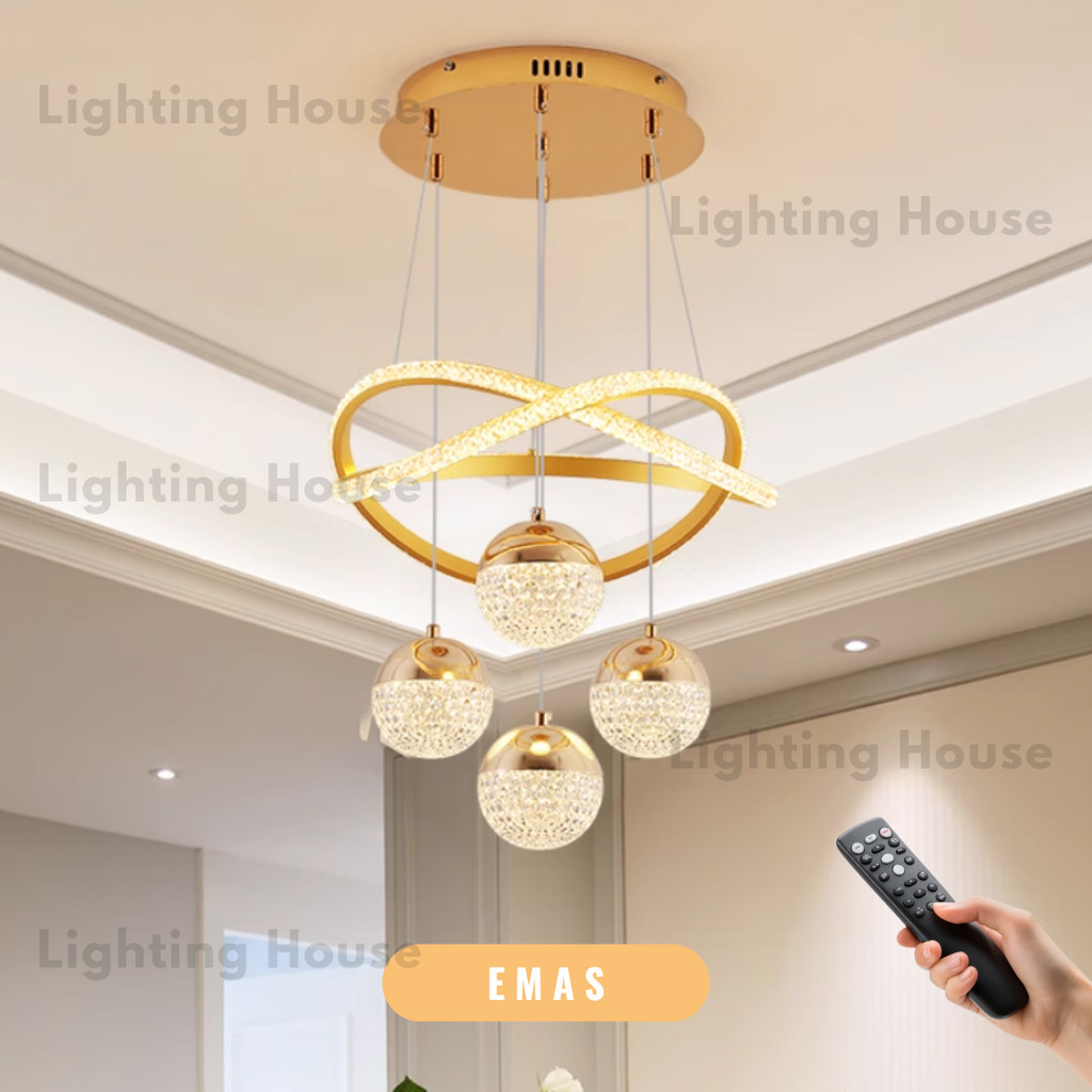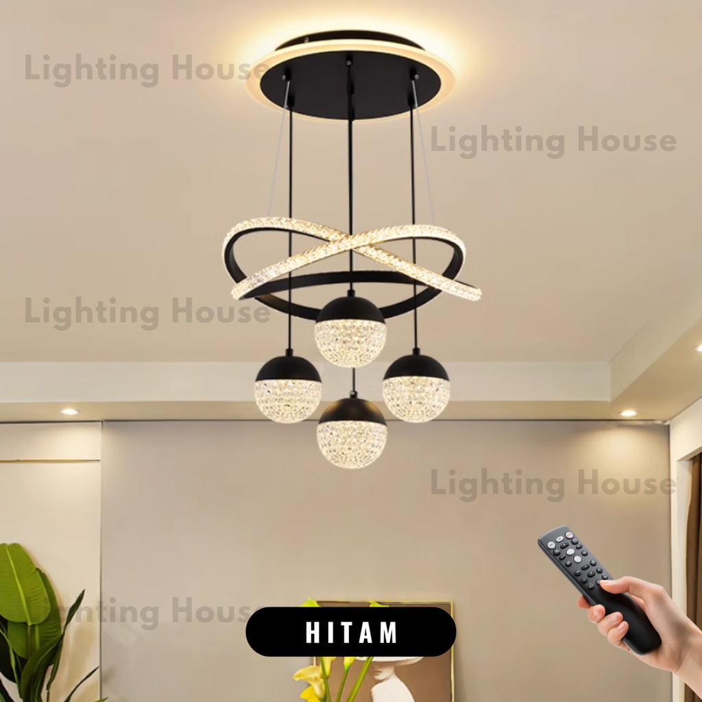 GARANSI 1 TAHUN Lampu Gantung Kristal Minimalis 3 warna LED Remote Control Dekorasi Nordik Eropa Ruang Tamu