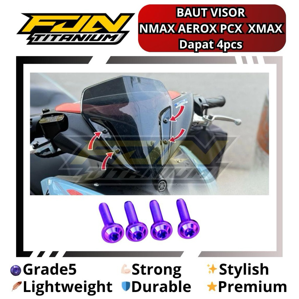 Baut titanium Visor Windshield Aerox old Aerox New Probolt Titanium Vietnam 4pc pnp original