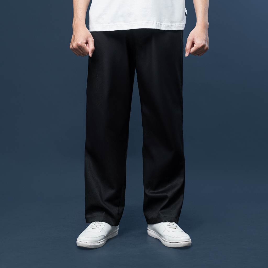 Fatto A Mano Celana Chinos Loose Fit Long Pants Baggy Panjang Hitam Black