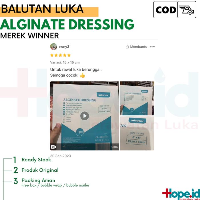 Alginate Dressing Winner 10x10 | Menyerap Cairan Luka - Harga Per LEMBAR