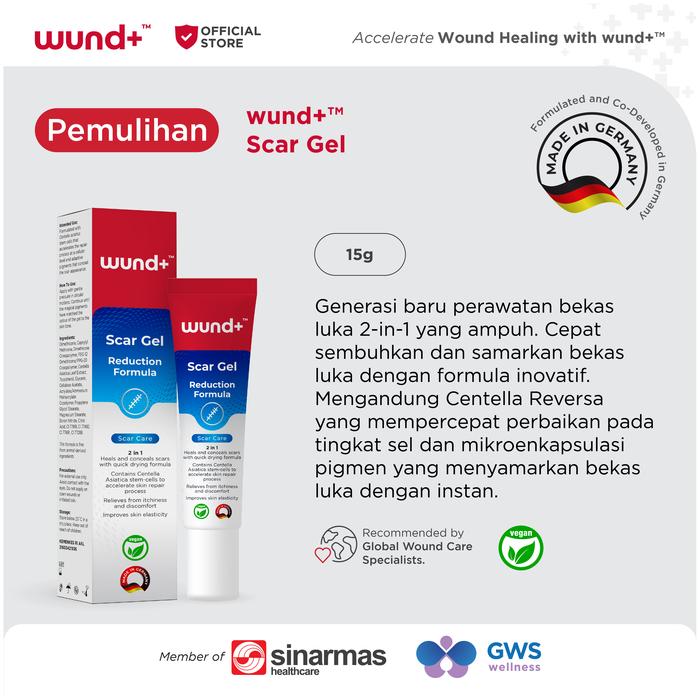 wund+ Scar Gel - Penghilang Bekas Luka Caesar/Pasca Operasi/Luka Bakar 15gr Menyembuhkan