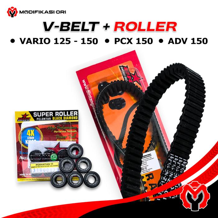 PAKET DRIVE BELT DAN SUPER ROLLER BRT BLACK UNTUK PCX 150 ADV 150 125 150 VARIO - VARIO 125 KZR, 11 GRAM
